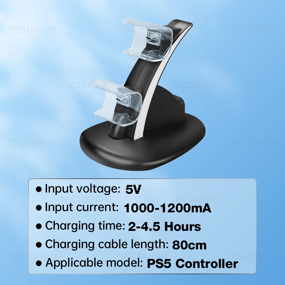 Esta estação de carregamento do controlador PS5 foi projetada para se conectar a adaptadores de energia designados e pode carregar controladores duplos PS5 ao mesmo tempo.É um acessório indispensável para o controlador PS5, permitindo que você jogue por longos períodos de tempo com seu console Playstation 5.