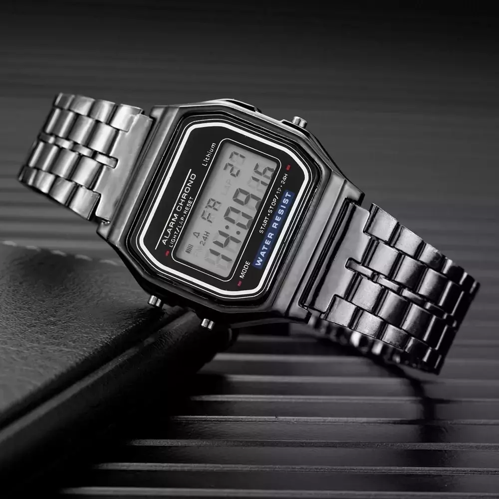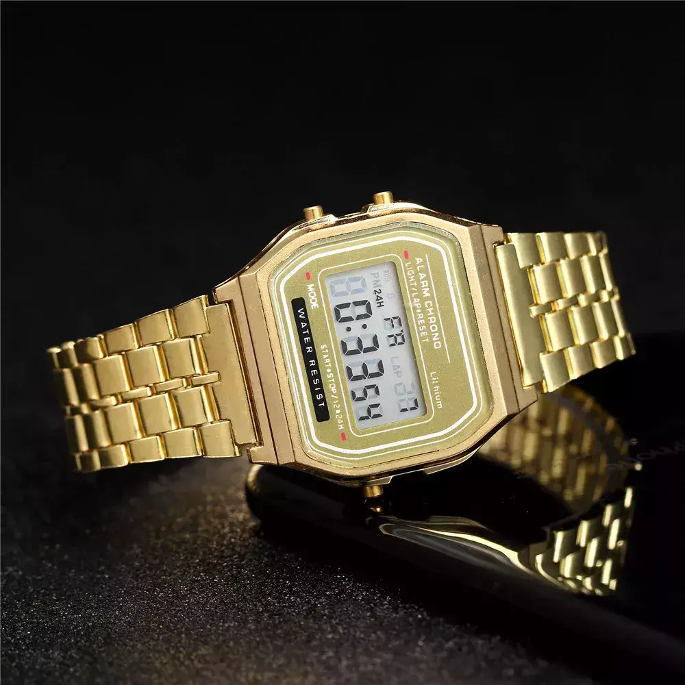 Elegante relógio digital para mulheres ouro prata aço inoxidável negócios senhoras relógios de pulso eletrônicos homem relógio zegarek damski
